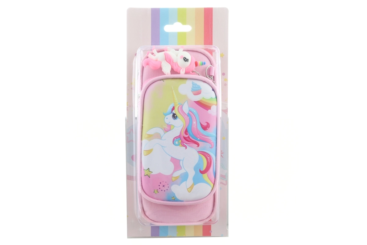 Cette trousse stylée à motif licorne est idéale pour l’école et les loisirs. Grâce à ses deux poches zippées, vous séparez facilement les fournitures d’écriture des petits objets comme des élastiques, un taille-crayon ou des autocollants. Le panneau avant 3D avec arc‑en‑ciel et licorne apporte une touche ludique, tandis que les zips de qualité garantissent une ouverture fluide.