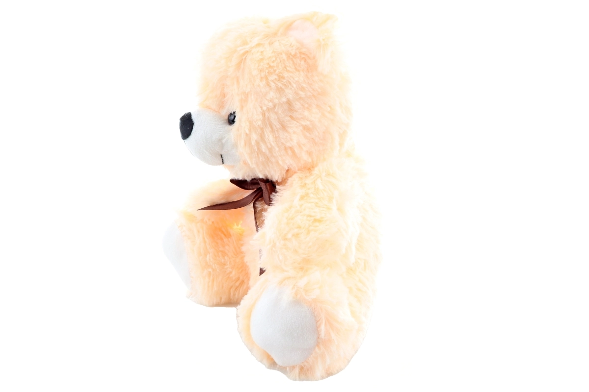 Ce nounours en peluche de couleur claire deviendra le meilleur ami pour les câlins et l’endormissement. Sa fourrure douce et moelleuse est agréable au toucher, tandis que ses pattes contrastées et son nœud décoratif apportent une touche d’élégance. Grâce à son soin de fabrication et à ses détails sûrs, il convient même aux tout-petits dès 0 an.