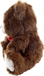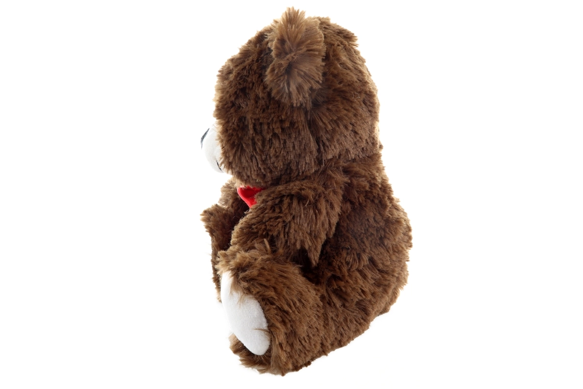 Cet ourson en peluche brun foncé fera craquer les enfants comme les adultes. Il a un pelage doux, des pattes et un museau blancs contrastés, de grands yeux expressifs et un adorable ruban rouge. Grâce à sa fabrication de qualité et à son rembourrage moelleux, il est parfait pour les câlins, l’endormissement ou comme décoration dans la chambre d’enfant.