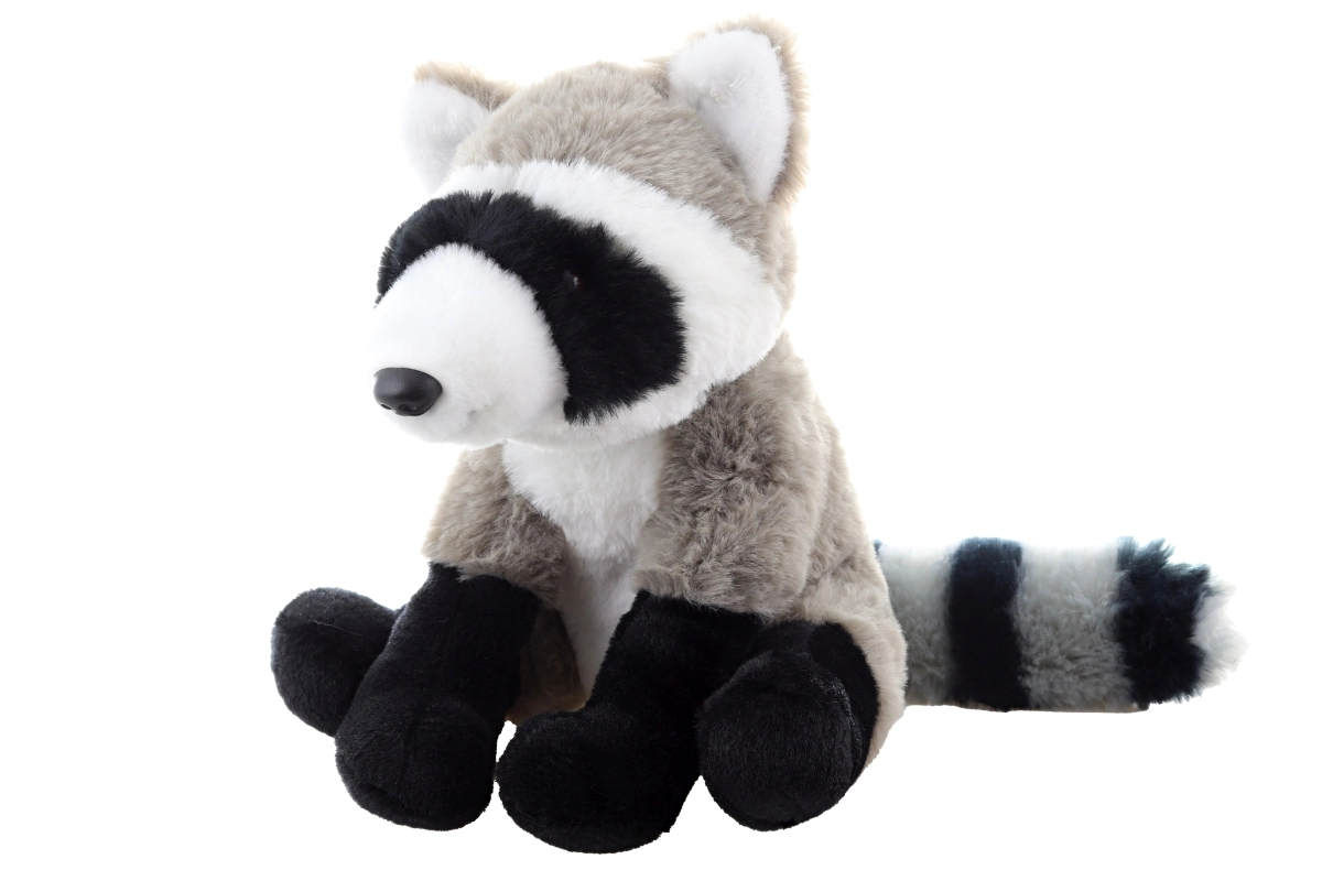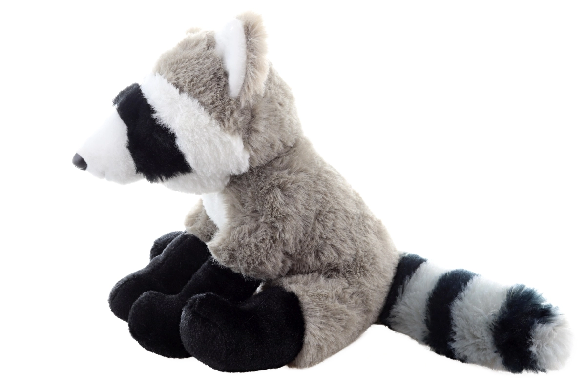 Le masque noir caractéristique, les pattes et la queue rayée donnent au jouet un aspect à la fois craquant et fidèle.