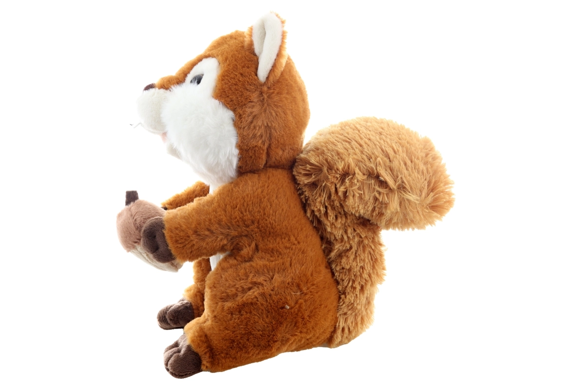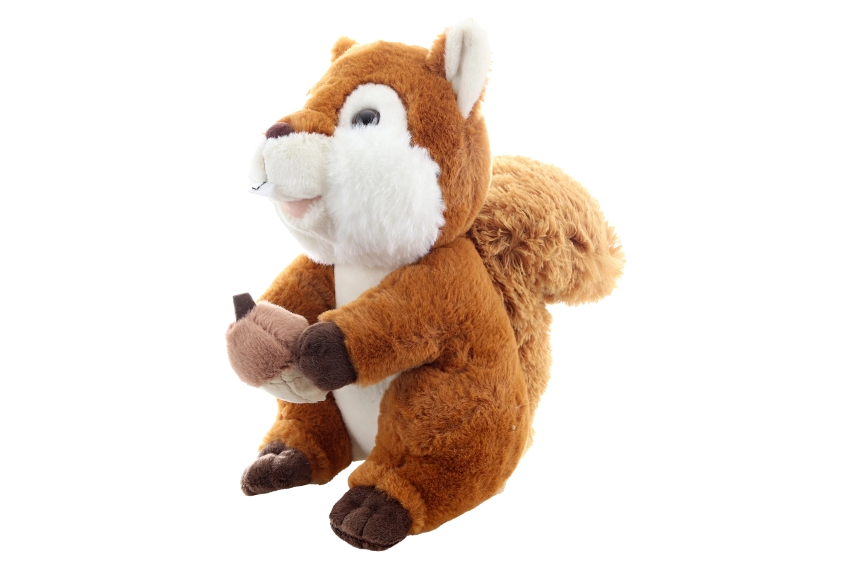 Adorable écureuil en peluche de 23 cm, compagnon idéal pour les enfants dès 0+. Il a une fourrure toute douce, une queue duveteuse et tient un petit gland dans ses pattes. Parfait pour câliner, jouer et décorer la chambre d’enfant.
