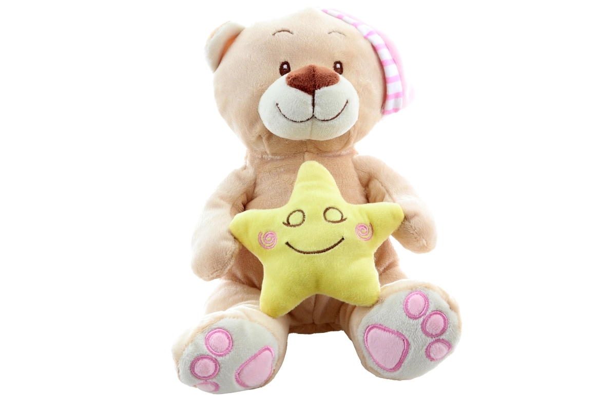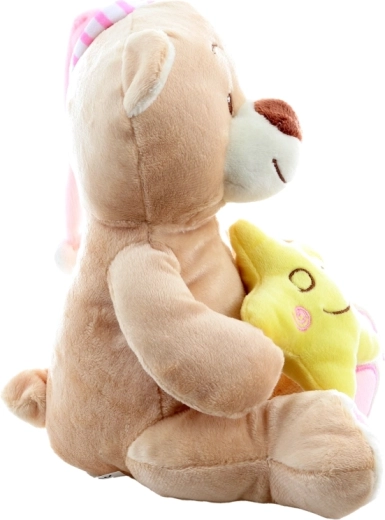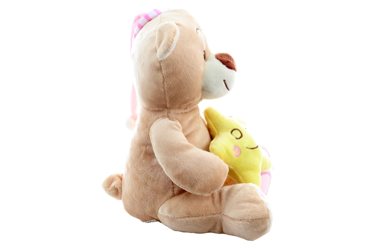 Ce nounours tout doux, avec son bonnet de nuit rose et sa délicate petite étoile jaune à tenir dans la main, apporte aux enfants un sentiment de sécurité et un sommeil paisible. Grâce à sa fabrication de qualité et à ses détails brodés, il convient aussi aux nouveau-nés.