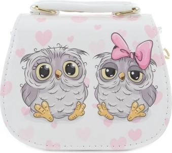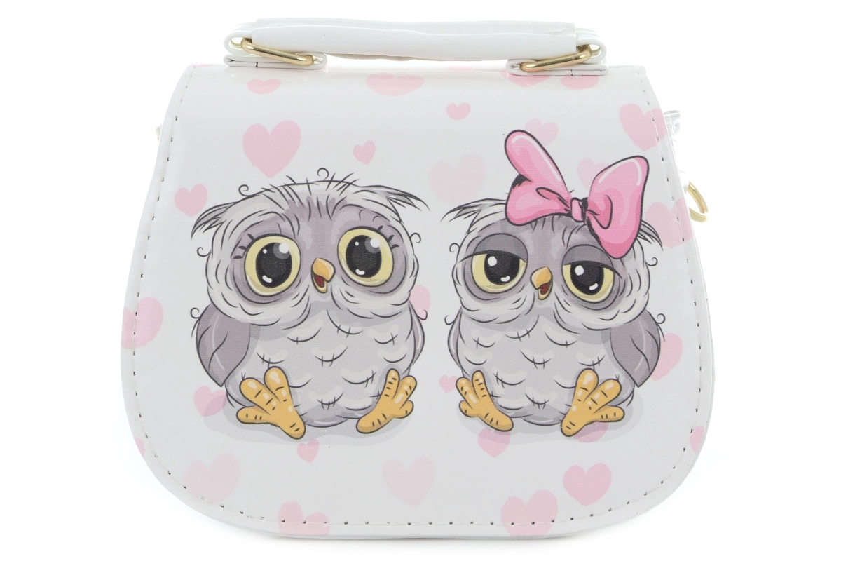 Adorable sac à main blanc pour enfant avec des chouettes, idéal pour les petites coquettes. Il offre des dimensions compactes et une conception légère pour un port confortable. Design ludique avec des chouettes, format pratique et fabrication robuste pour un usage quotidien comme pour les sorties.