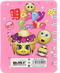 Un carnet stylé au motif d’émoticônes qui ravira enfants et adultes. Les feuilles lignées et colorées facilitent une écriture lisible et la spirale robuste permet de tourner les pages aisément et d’ouvrir le bloc complètement à plat. Son format compact se glisse dans un sac à main, un sac à dos ou même une trousse scolaire.