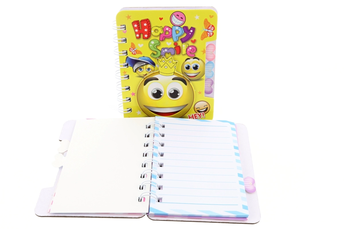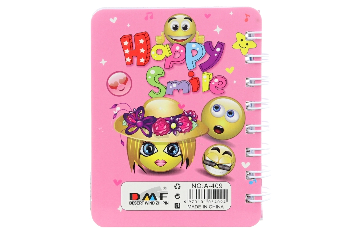 Les couvertures « Happy Smile » existent en plusieurs designs joyeux. Le carnet est emballé en sachet et convient pour des notes, listes, journal intime ou croquis rapides. Ce produit n’est pas un jouet.