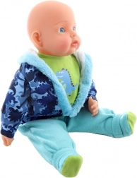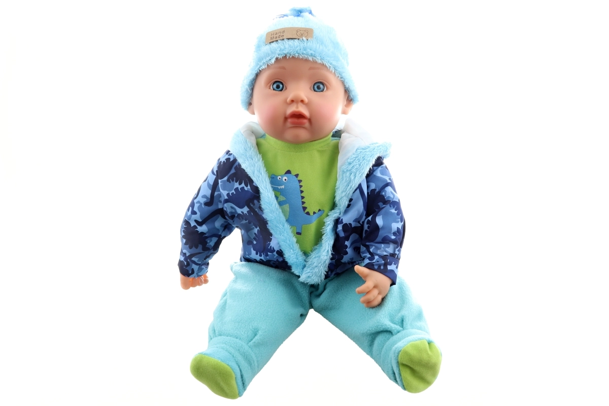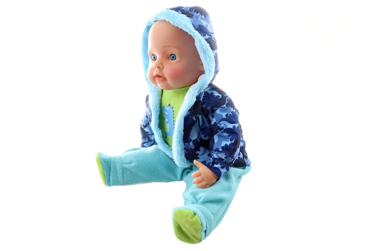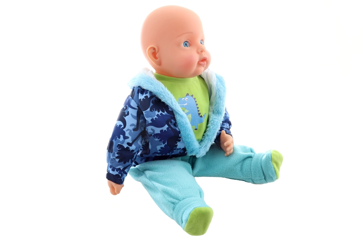 Cette grande poupée bébé garçon est un excellent compagnon pour le jeu quotidien. Grâce à son corps souple, elle est agréable à tenir et à câliner, tandis que la tête et les extrémités en plastique apportent un aspect authentique. La tenue stylée à motif dinosaure se retire et se remet facilement – idéale pour entraîner la motricité fine et les jeux imaginatifs.