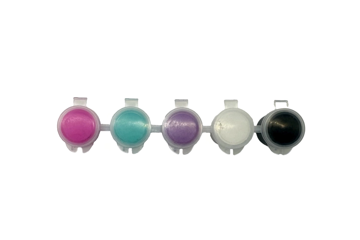 Le kit comprend 5 teintes pastel dans des gobelets reliés avec couvercles rabattables. Les peintures ne se renversent pas et se répandent moins – idéal pour les créations des enfants.