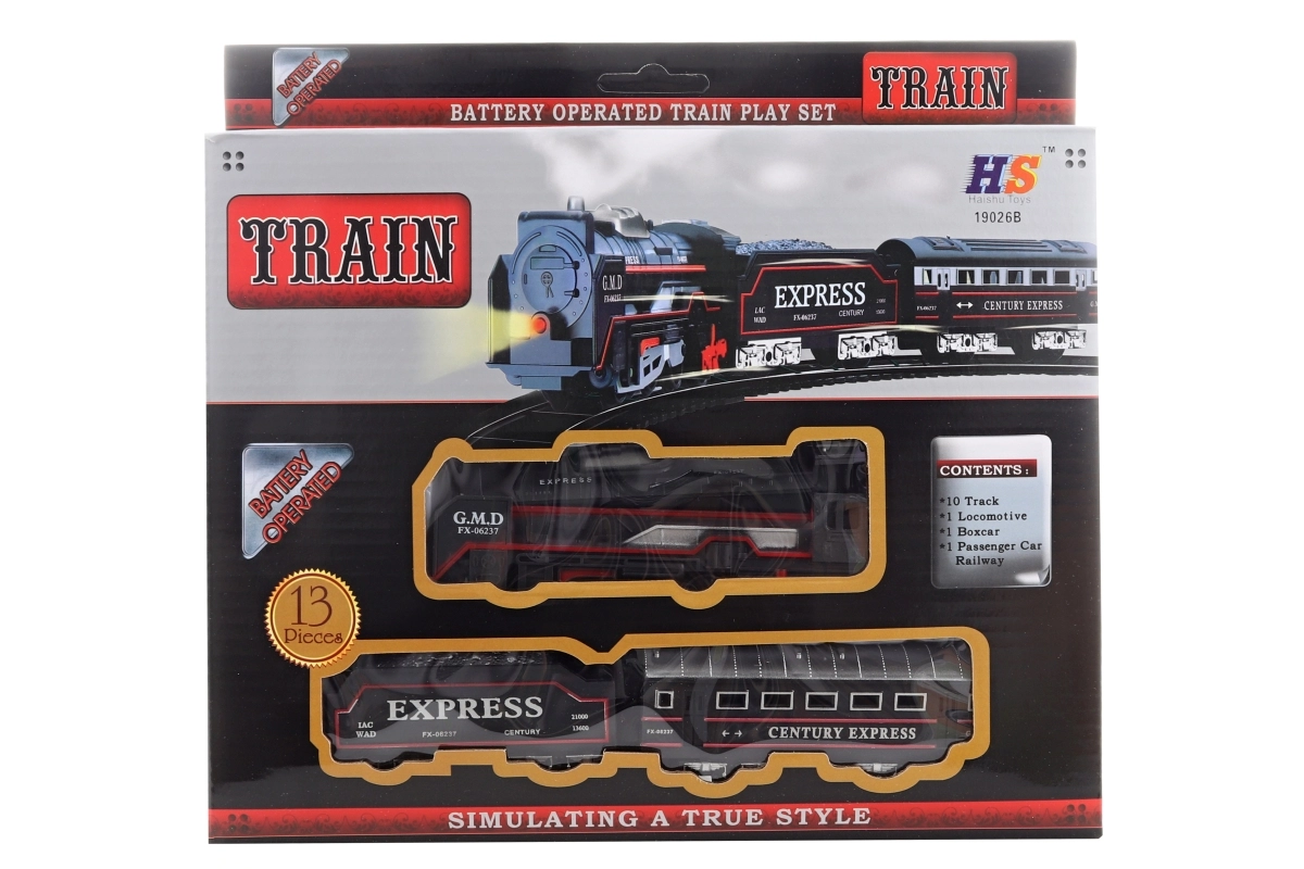 Découvrez le ludique coffret de train à piles, qui ravira les petits amateurs de trains dès 3 ans. Le set comprend 10 rails, une locomotive et 2 wagons en plastique résistant, et une fois assemblé forme un circuit d’un diamètre d’environ 67,5 cm. La locomotive est alimentée par 2× piles AA (non incluses).