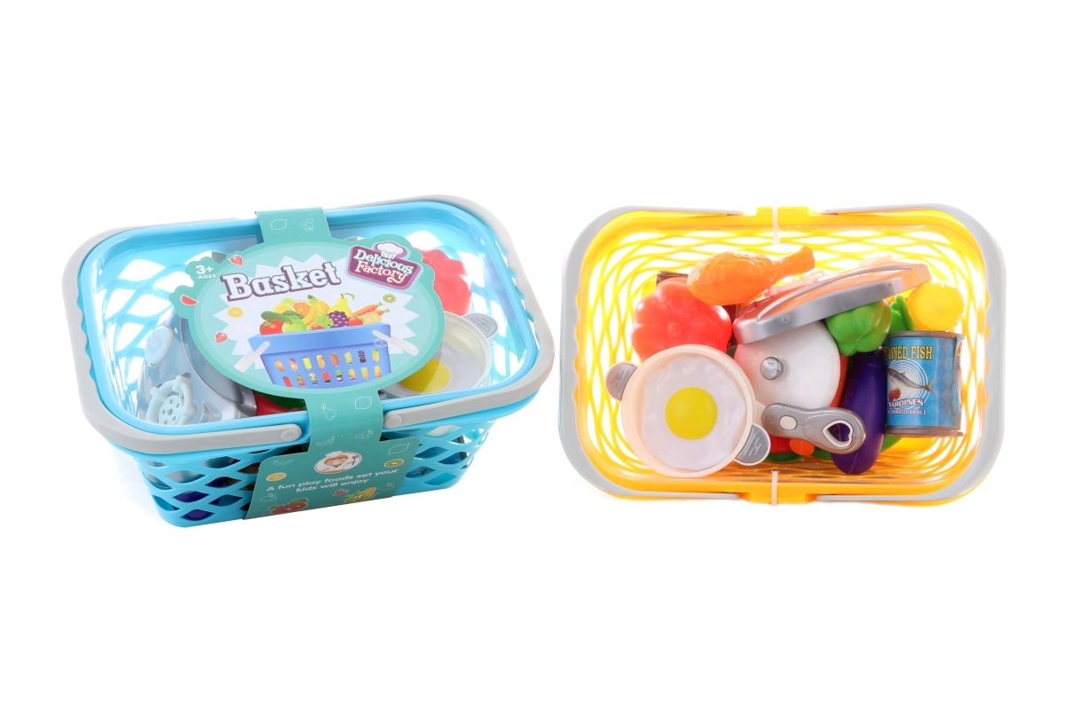 Ce set polyvalent réunit cuisine et achats en un seul produit. Les enfants profiteront d’un jeu réaliste avec des aliments et de la vaisselle, tandis que le panier à poignées sert aussi de sac de courses. Idéal pour les cuisines enfant et les jeux partagés avec frères, sœurs ou amis.