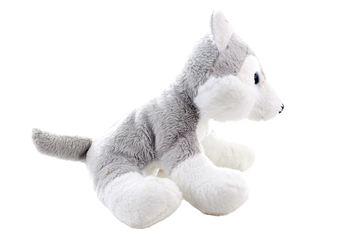 Adorable husky en peluche de 15 cm, parfait compagnon de câlins pour les enfants dès 0+. Il offre une finition douce et moelleuse, des yeux et un petit nez finement brodés et, grâce aux billes dans le corps, il s’assoit mieux et garde sa forme.