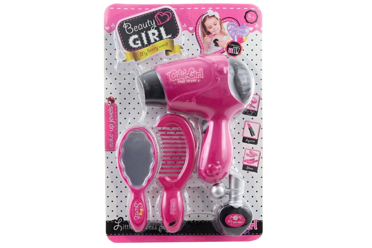 Développez la créativité des petites coiffeuses avec cet ensemble complet pour jouer au salon. Il comprend un sèche-cheveux à piles, un miroir, un peigne et un flacon de parfum – tout ce qu’il faut pour des premières coiffures et des jeux de rôle amusants. Le sèche-cheveux fonctionne avec 1× pile AA (non incluse). Convient aux enfants à partir de 3 ans.