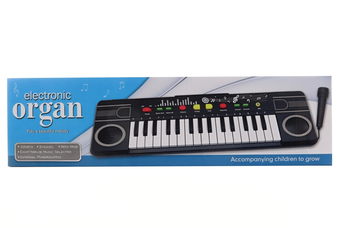 Piano pour enfants amusant à piles avec 32 touches et micro intégré qui développe l’oreille musicale et la créativité. Structure en plastique légère, commande facile et alimentation par 3× AA (non fournies) en font un excellent choix pour les enfants à partir de 3 ans.