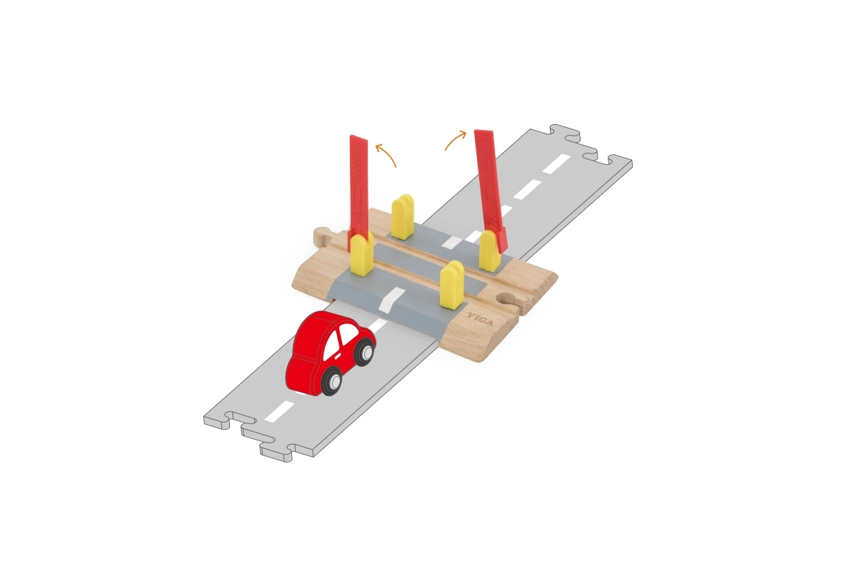 Ce passage à niveau en bois, de haute qualité, complète à merveille tout circuit de train ou set routier. Les barrières rouges mobiles et les poteaux bien visibles reproduisent fidèlement la circulation réelle, aidant les enfants à plonger dans le jeu et à inventer leurs propres situations de trafic.