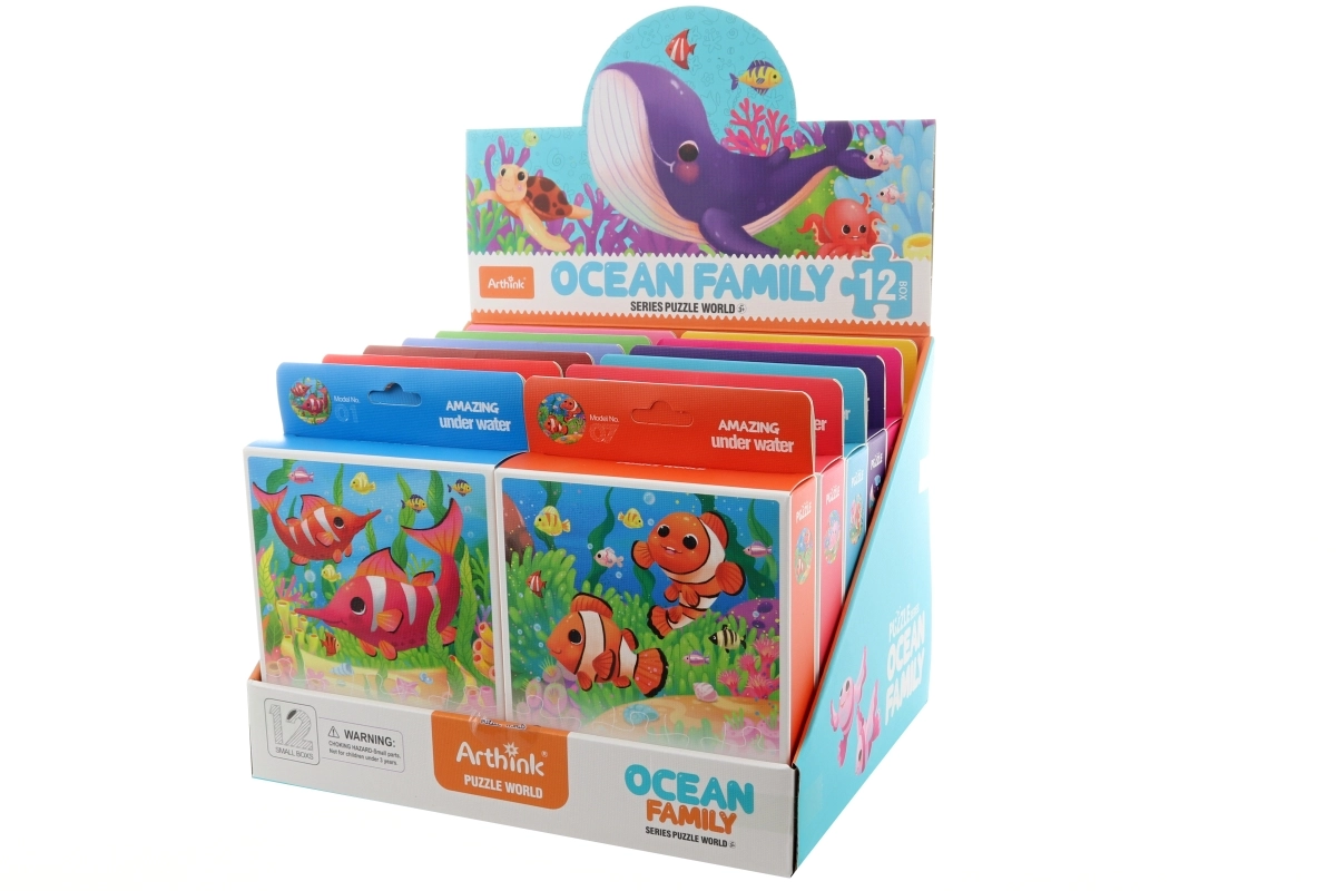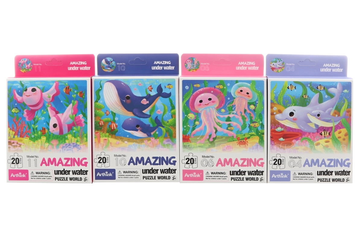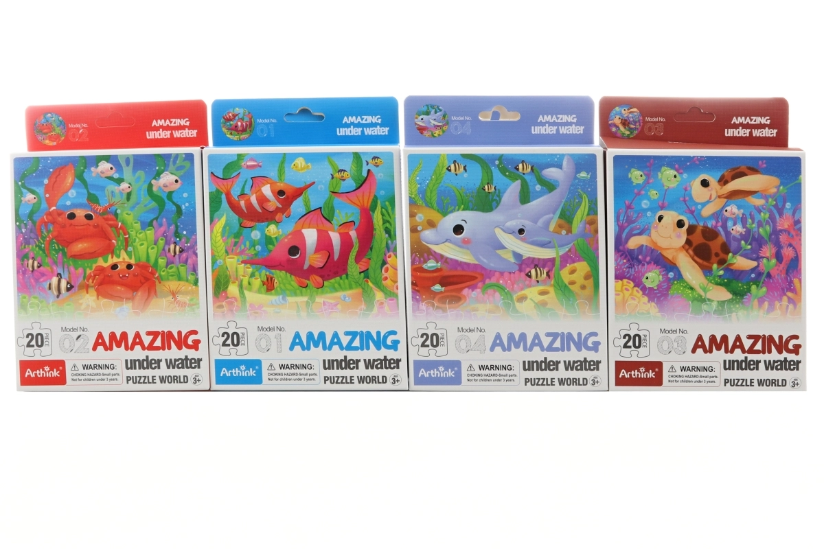 Une fois assemblé, le puzzle a des dimensions compactes de 21 × 19 cm, ce qui le rend facile à ranger et à transporter. Parmi les 12 motifs disponibles, nous envoyons une variante selon la disponibilité actuelle en stock, chacun représentant des scènes attrayantes de la vie sous-marine.