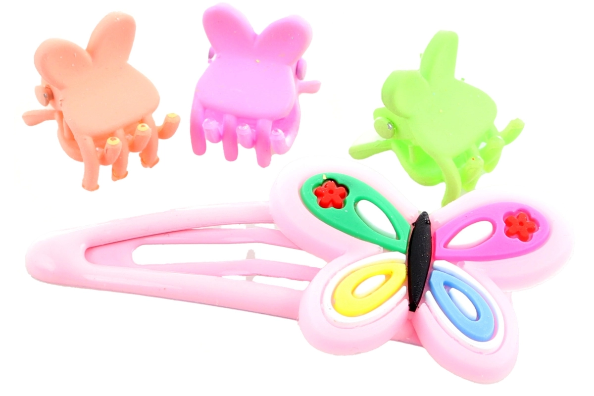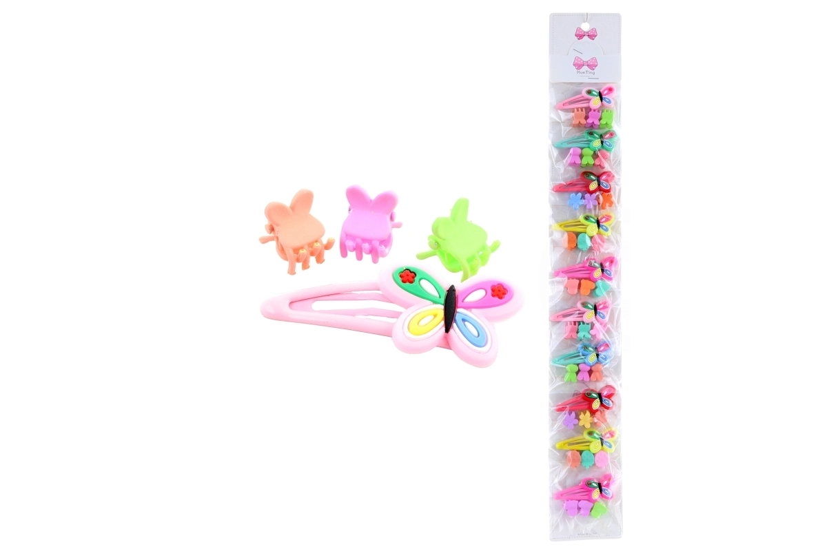 Set pratique pour la coiffure quotidienne et les petites coiffures de fête. Chaque lot contient 1 barrette à motif papillons et 3 mini pinces, le tout compactement emballé dans un sachet. Idéal pour fixer rapidement de fines mèches, un styling décoratif et des coiffures délicates pour enfants et femmes. Vente uniquement par lot de 10 pièces (mix de différents modèles).