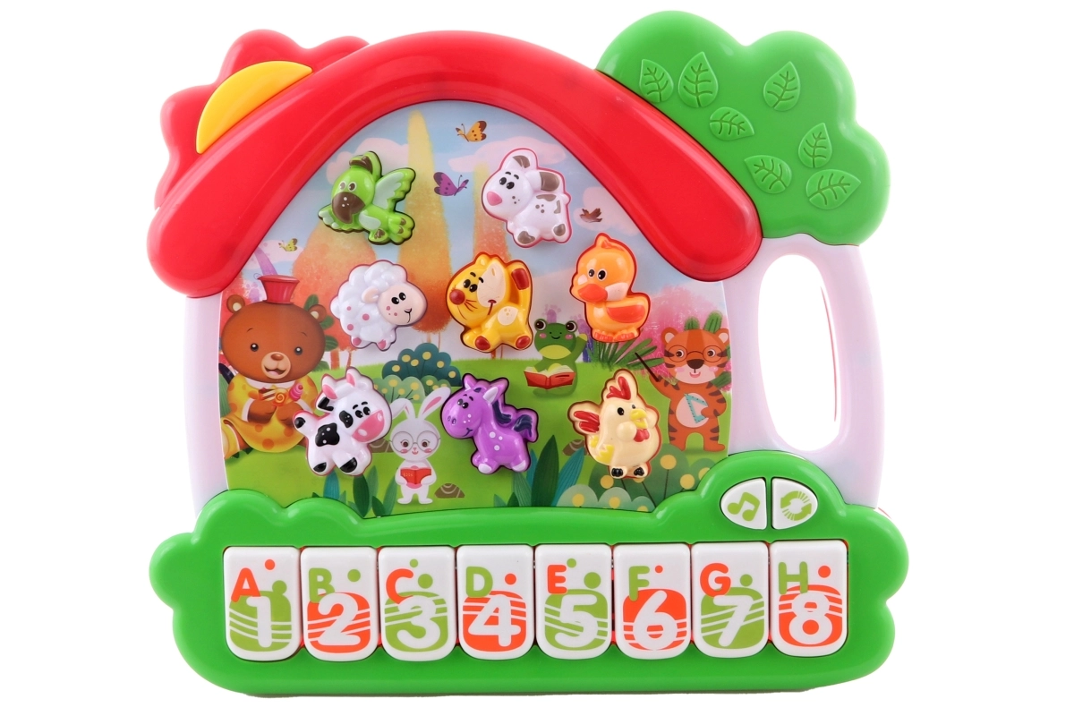 Ce piano ludique pour enfants en forme de petite maison ravira les jeunes musiciens dès 3 ans. Il propose 8 boutons avec sons d’animaux et 8 touches numériques avec prononciation anglaise, développant ainsi l’oreille musicale et les compétences linguistiques. Conception en plastique légère, utilisation facile et dimensions compactes pour jouer à la maison comme en voyage.