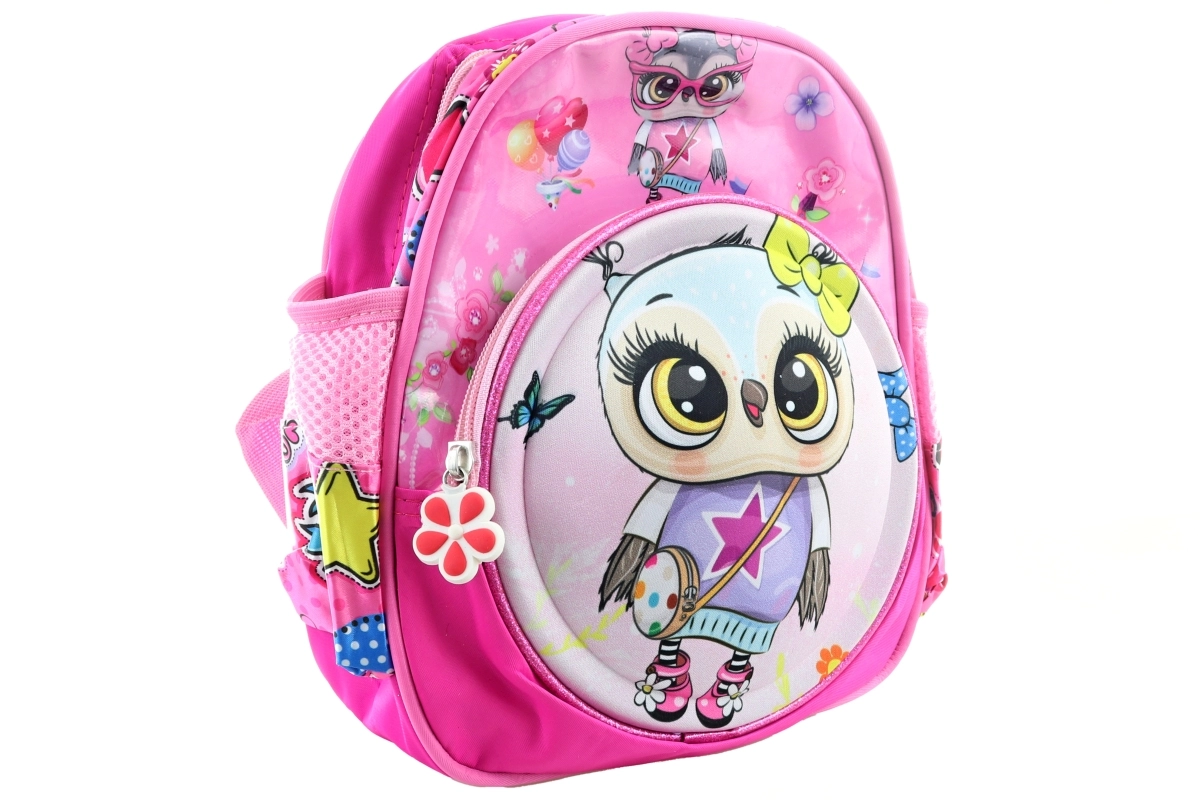 Ce sac à dos léger et pratique, de couleur rose avec une grande chouette, est idéal pour les petites affaires en voyage comme pour la maternelle. Le compartiment principal accueille le goûter, un jouet et un imperméable, tandis que la poche frontale ronde est parfaite pour les clés ou des mouchoirs. La face avant moulée et les fermetures éclair de qualité avec tirettes décoratives apportent style et durabilité.
