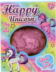 Ce kit créatif d’excavation ravira chaque petit explorateur. La boîte contient une pierre à tailler et une tige en plastique avec lesquelles l’enfant découvre pas à pas la licorne en plastique dissimulée. Après exposition à la lumière du jour, la figurine luira dans l’obscurité, intensifiant encore l’expérience de découverte.