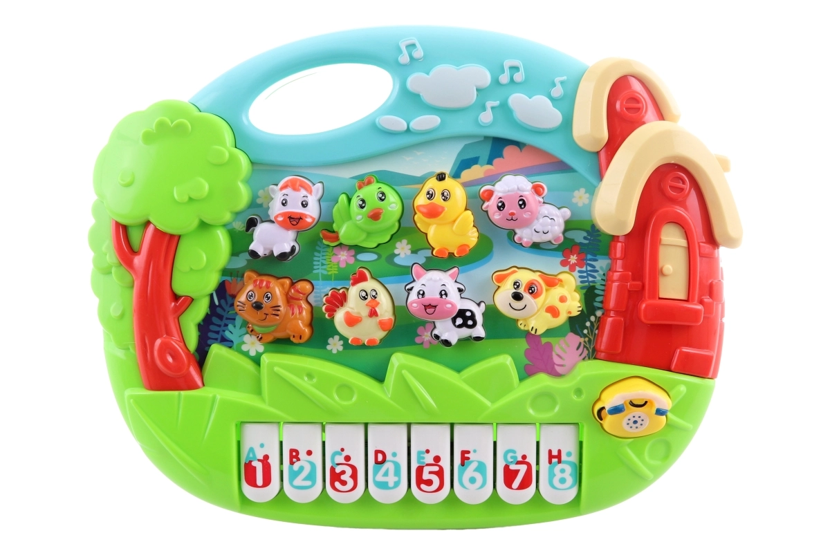 Découvrez un amusant petit piano pour enfants avec des animaux, qui développe le sens du rythme, l’ouïe et la motricité fine. Il offre 8 touches avec mélodies et 8 boutons avec sons d’animaux, complétés par des effets lumineux et un contrôle facile pour les enfants dès 3 ans. Un jouet idéal pour une première initiation à la musique et aux sons de la ferme.