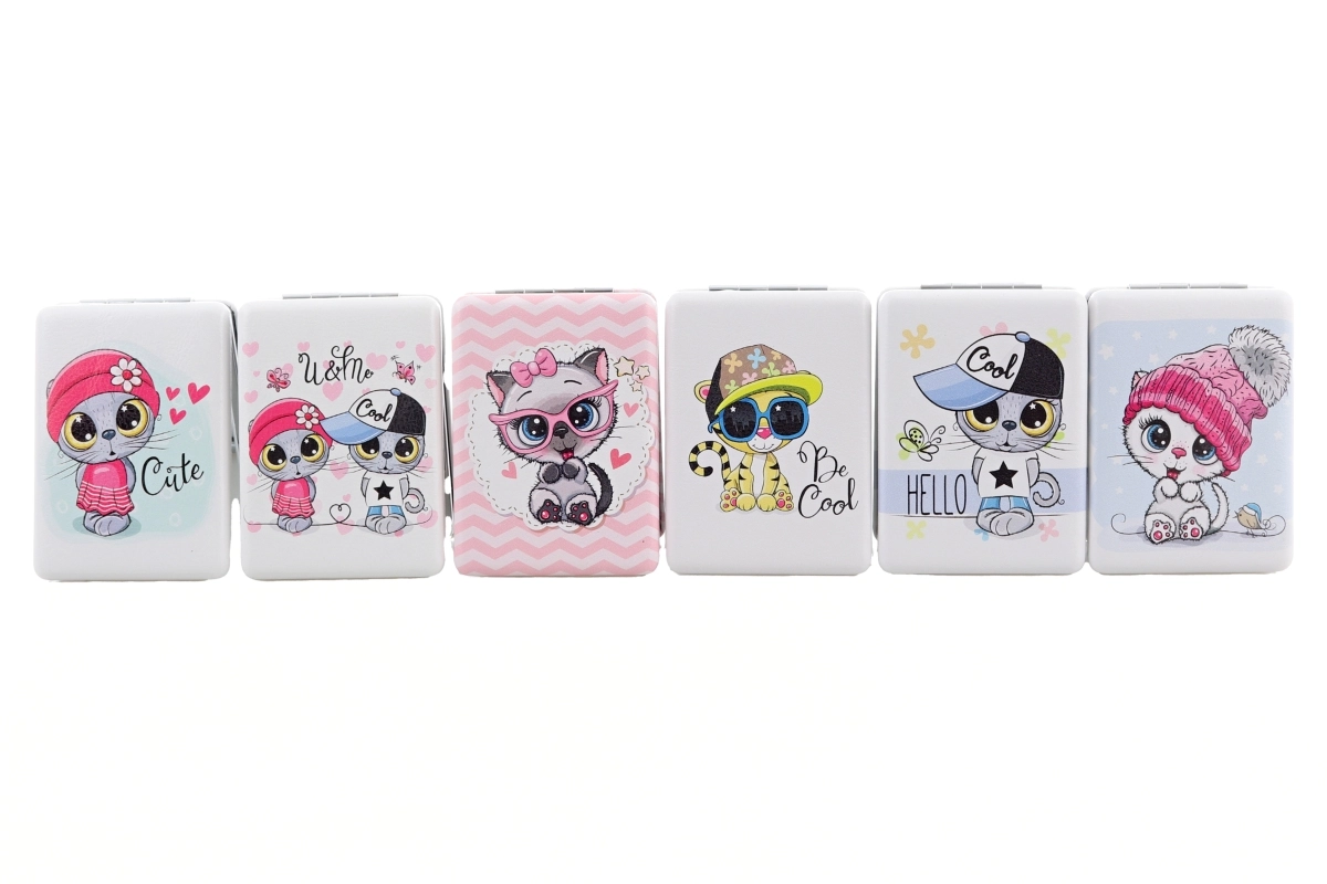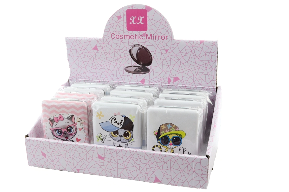 Pratique miroir de poche rectangulaire avec des motifs d’animaux joyeux, idéal pour le sac à main ou le sac à dos. Il offre un miroir des deux côtés, des dimensions compactes de 6 × 8,5 × 1,5 cm et est emballé individuellement dans un sachet. Disponible en plusieurs motifs – livraison selon la disponibilité en stock. Ce produit n’est pas un jouet.