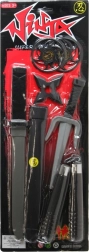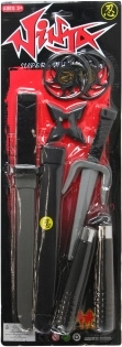 Contenu de l’emballage : épée de samouraï avec fourreau d’environ 36 cm, dague, nunchakus et 3 shurikens (étoiles). Un excellent choix pour le carnaval, les déguisements ou les histoires d’action à la maison.