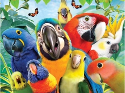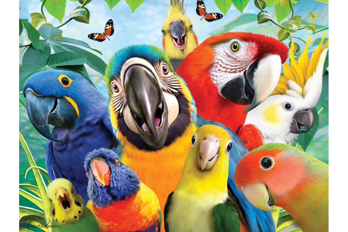 - Motif joyeux : des perroquets souriants aux couleurs vives