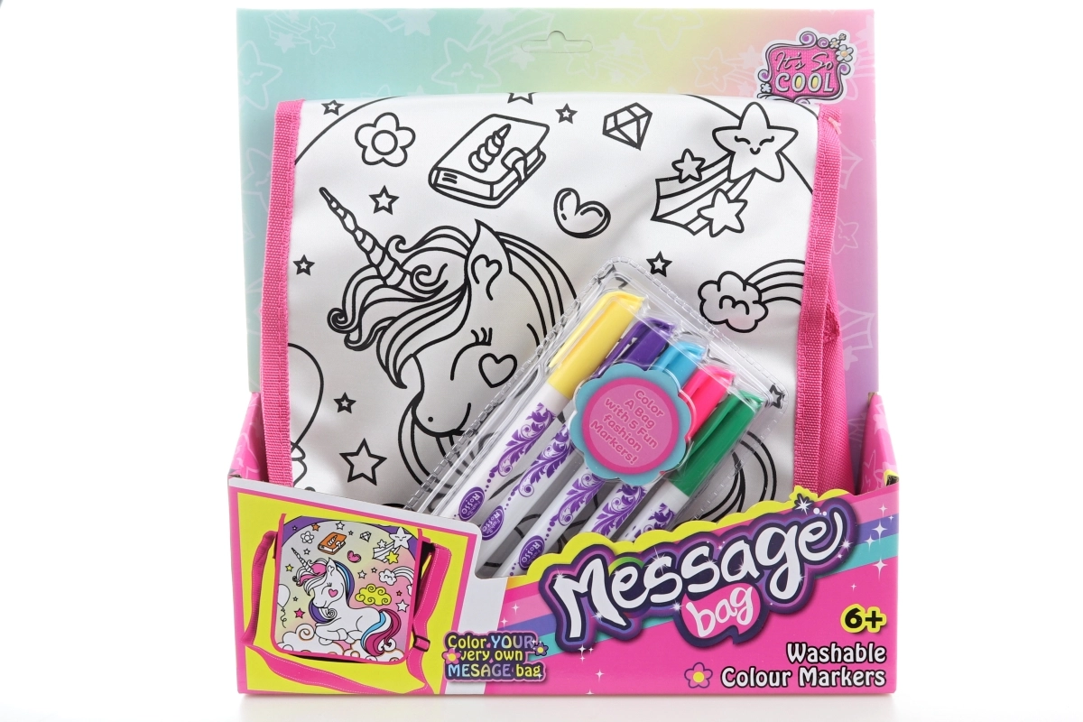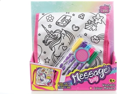 Un sac à colorier créatif avec un adorable motif de licorne qui ravira chaque enfant créatif. Il comprend une bandoulière rose réglable et un set de 5 couleurs pour un coloriage immédiat. Le sac possède une fermeture pratique à velcro et est idéal pour les petits objets comme pour les déplacements. Favorise la créativité, utilisation facile et divertissement pour enfants 3+.