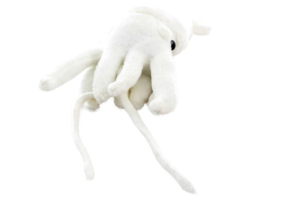 Ce calamar en peluche blanc ravira les petits comme les grands amoureux des créatures marines. Sa forme réaliste avec plusieurs tentacules et un œil expressif stimule l’imagination et encourage le jeu créatif et inventif. Grâce à sa matière agréable et soyeuse, il est parfait comme doudou pour le lit et comme jolie décoration pour la chambre d’enfant.