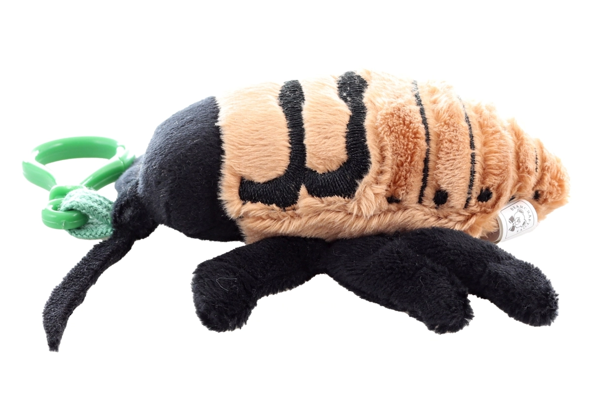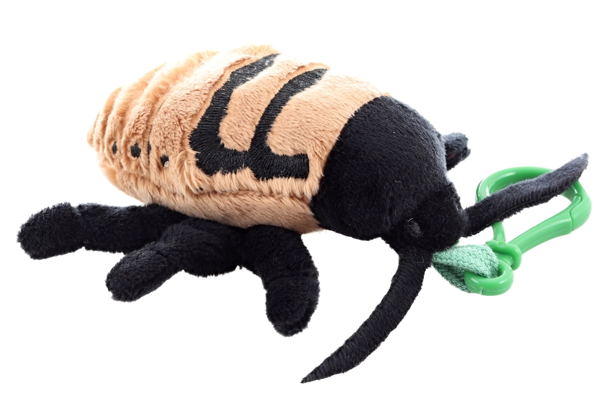 Ce cafard siffleur en peluche, au format mini, combine design mignon et côté pratique. Grâce à sa peluche moelleuse, il est agréable au toucher, tandis que le clip en plastique robuste assure une fixation rapide sur une fermeture éclair, un sac ou des clés. De fines broderies et ses multiples petites pattes lui confèrent un aspect à la fois réaliste et joyeusement joueur.