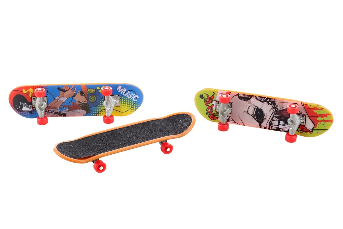 Profitez d’un divertissement sans fin avec ce set de 3 fingerboards pour riders petits et grands. Chaque mini skate d’environ 9,5 cm est fabriqué en plastique et métal résistants, idéal pour apprendre des figures sur la table ou la rampe. Parfait comme cadeau, pour les collectionneurs et pour développer la motricité fine et la créativité.