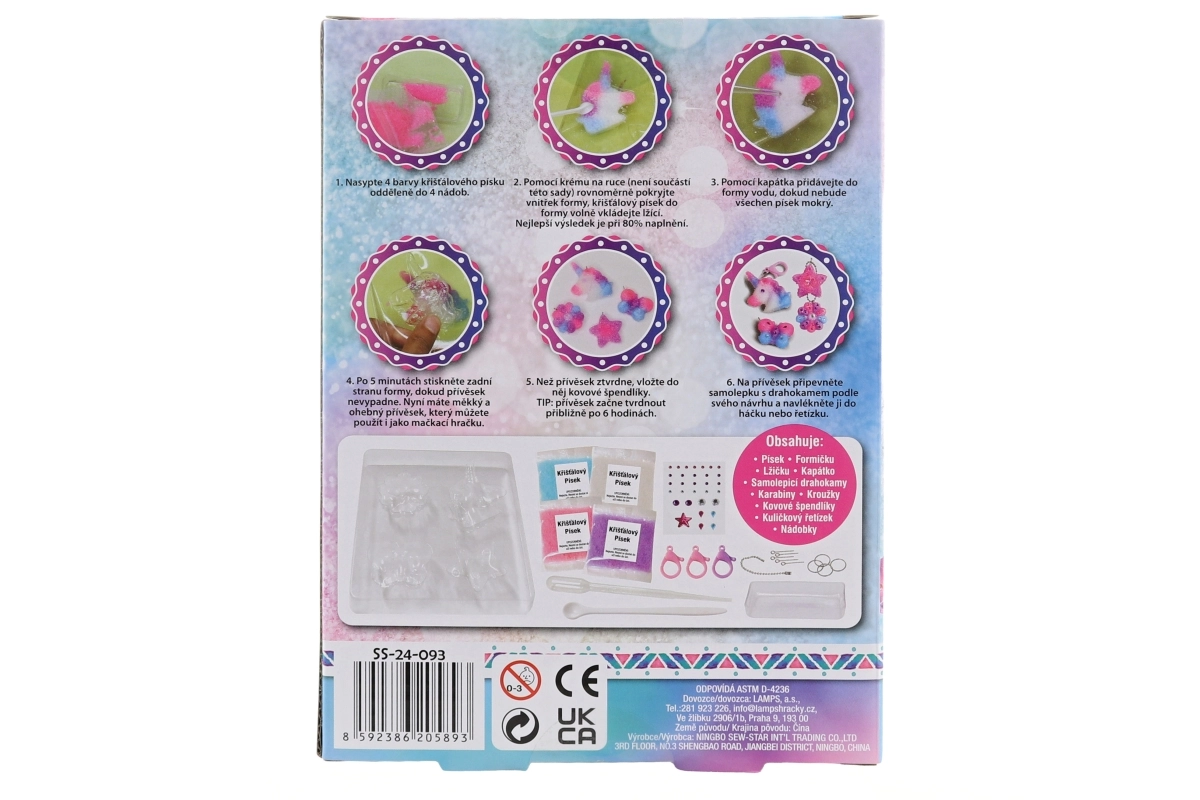 Découvrez la magie de la création avec ce kit créatif pour la fabrication de pendentifs en cristal. Il suffit de rajouter de l’eau et, en un rien de temps, les enfants réaliseront leurs propres pendentifs scintillants. Le kit contient tout le nécessaire et est idéal pour le développement de la créativité des enfants dès 3 ans.