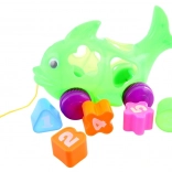Amusant poisson à encastrer sur roues à roue libre, qui associe mouvement et apprentissage. L’enfant s’amuse à le tirer avec une ficelle tout en s’entraînant à reconnaître les formes grâce à 5 blocs colorés. Le jouet, en plastique résistant, est léger, sûr et conditionné en filet. Dimensions 25 × 17 × 11,5 cm. La couleur est fournie selon la disponibilité en stock. Idéal pour développer la motricité fine, la coordination et la logique. Encastrement de formes, jouet à tirer à roue libre, 5 pièces, plastique résistant.