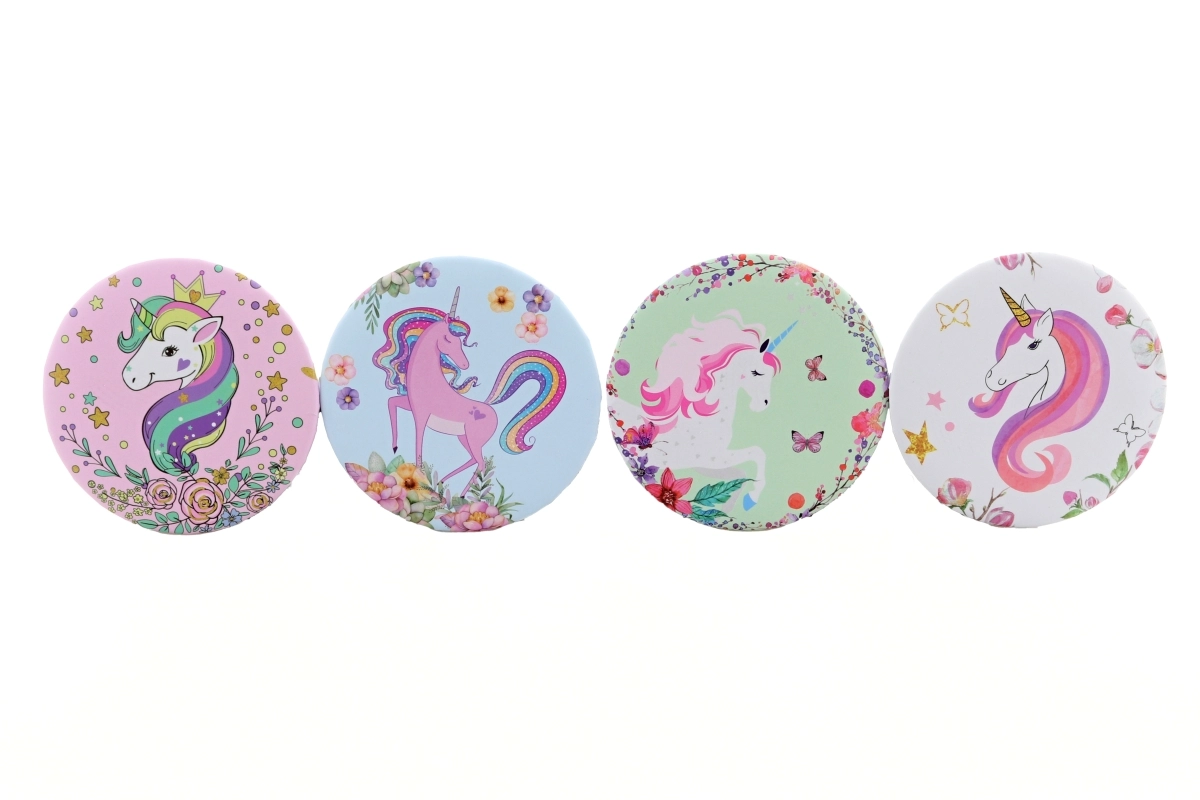 Un miroir rond stylé au motif féerique de licorne, parfait pour un usage quotidien ou comme joli cadeau. Son format compact d’environ 7 cm se glisse dans n’importe quel sac à main. Matière plastique légère, emballage pratique et designs variables selon la disponibilité en stock. Ce produit n’est pas un jouet.