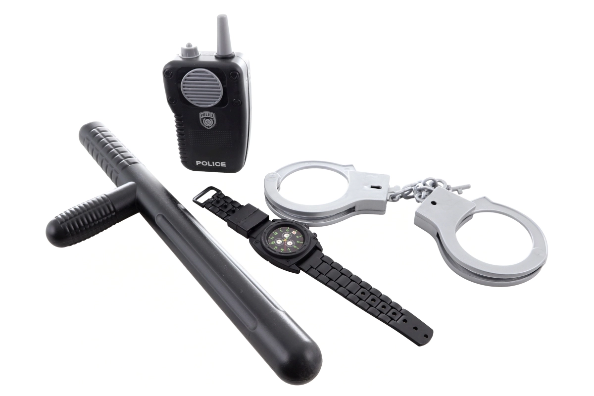 - Set complet : veste, montre, talkie-walkie, menottes et matraque