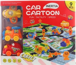 Ce set offre aux enfants des heures d’amusement et stimule leur imagination. Le tapis pratique avec routes sert de base de jeu, tandis que trois véhicules d’environ 8 cm s’adaptent parfaitement aux petites mains. Grâce au plastique robuste, les petites voitures sont durables et prêtes pour des courses quotidiennes.