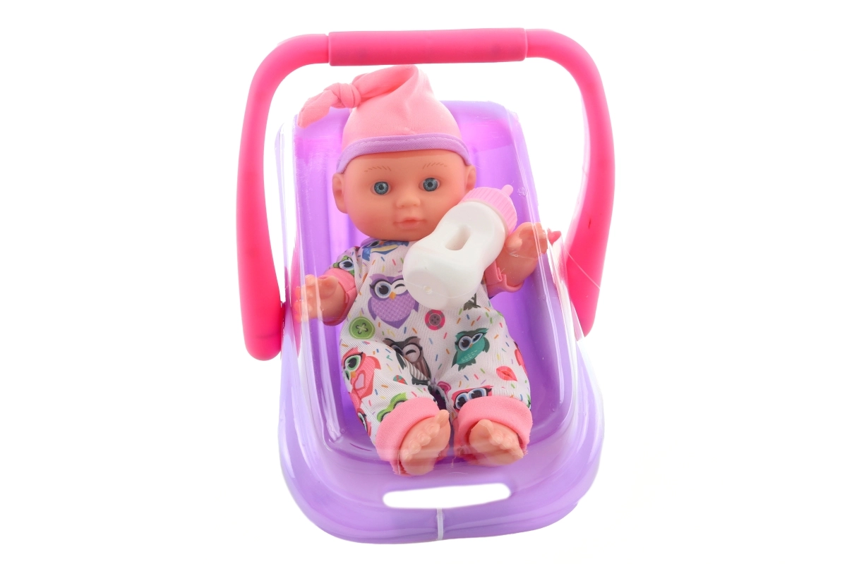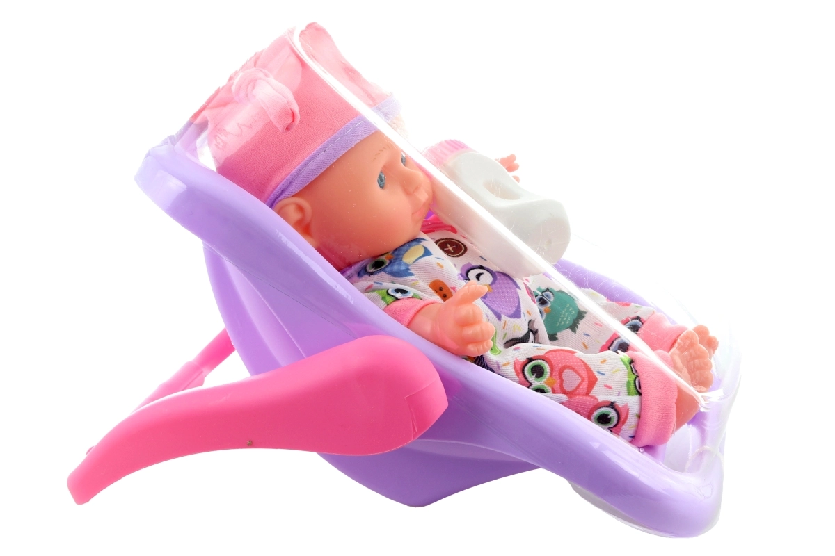 Adorable bébé de 22 cm dans un siège-auto pratique qui fera plaisir à chaque petite maman. Inclus également un biberon pour les jeux de nourrissage. Le bébé a des bras, jambes et tête articulés, est vêtu d’une tenue colorée à motifs de petites chouettes et grâce à son corps en plastique rigide, il garde parfaitement sa forme. Idéal pour les jeux de rôle et le développement de la motricité fine des enfants dès 3 ans.