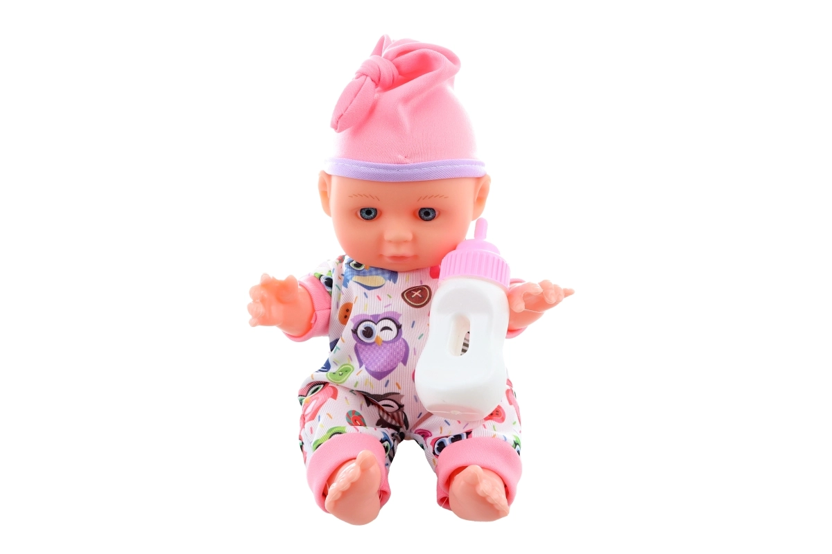 Comprend un biberon blanc pour jouer à nourrir et une tenue colorée avec des petites chouettes, qui donne du charme à la poupée et encore plus de possibilités de jeu.