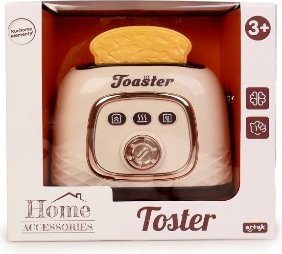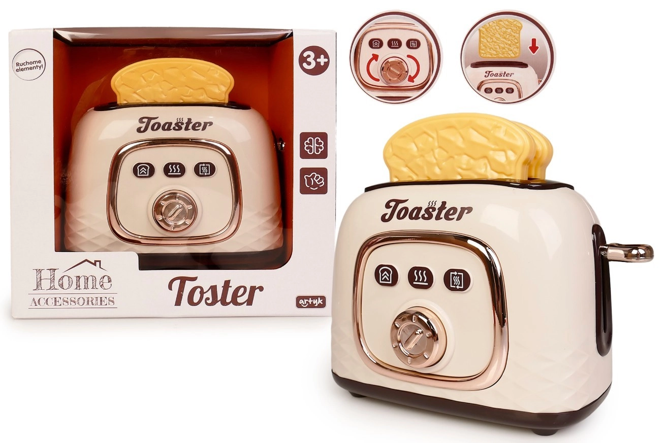 Un grille-pain pour enfants amusant avec toasts apporte un jeu de cuisine réaliste. En appuyant sur le bouton latéral, les toasts descendent et, après quelques secondes, ils sautent tout seuls. Super divertissement moteur, effets réalistes et molette rotative avec clics pour encore plus d’authenticité.