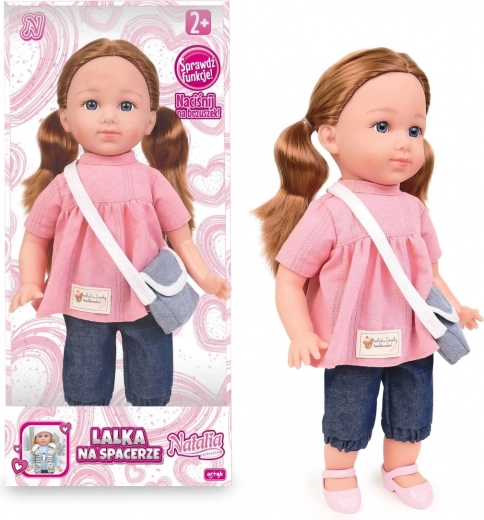 La poupée Natalia en tunique rose et pantalon tendance offre aux enfants beaucoup de divertissement et d’apprentissage. En appuyant sur son ventre, elle prononce des phrases en polonais et chante deux chansons, ce qui favorise l’écoute et l’imitation naturelle des adultes. Sa fabrication de qualité, ses traits délicats et ses membres mobiles en font une excellente compagne au quotidien.