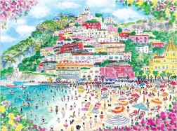 - Motif de la côte italienne – illustration colorée et détaillée, pleine d’ambiance estivale.