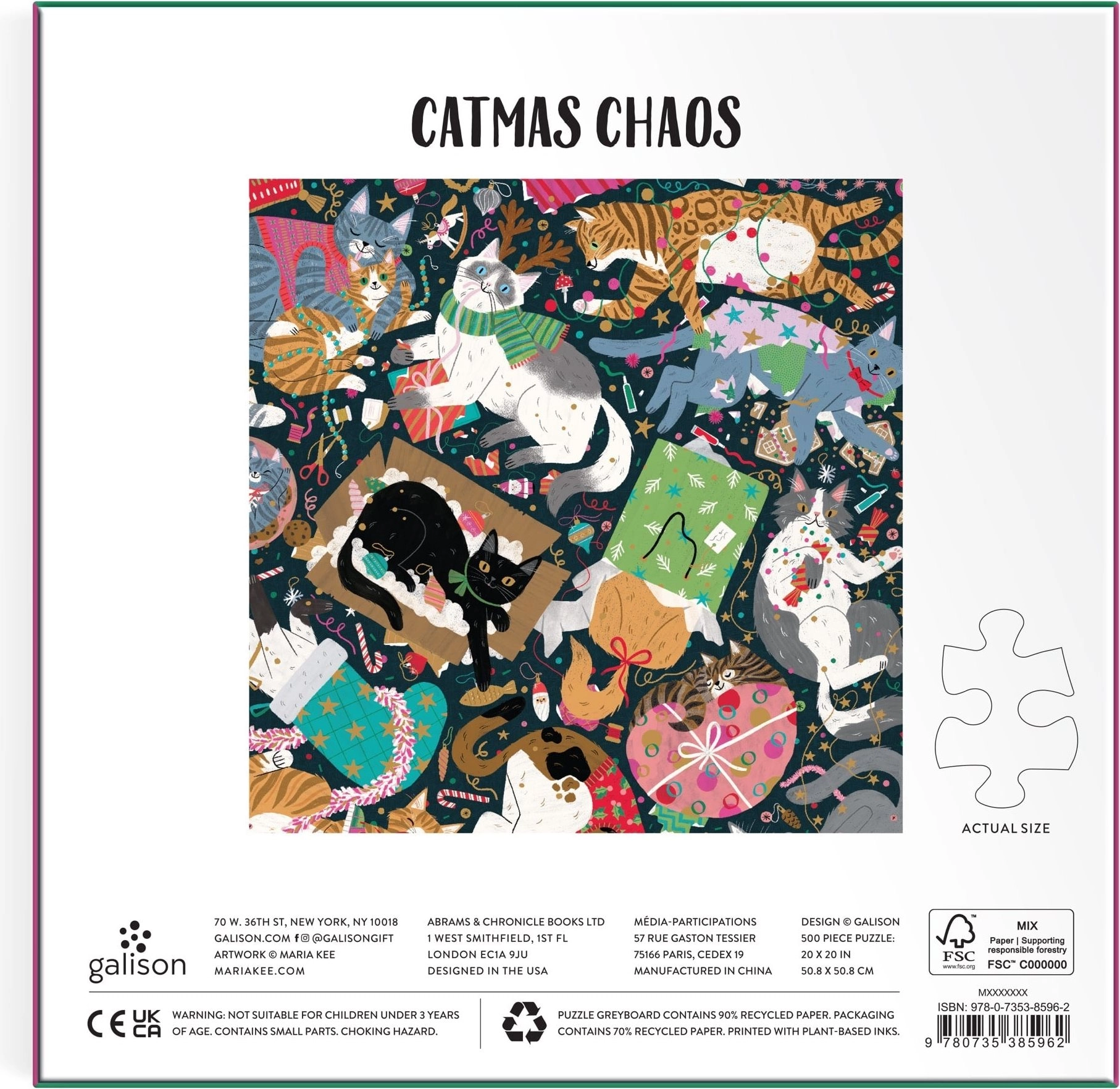 Profitez d’un assemblage ludique avec de subtils effets métallisés : ces puzzles carrés au motif du chaos de Noël des chats offrent 500 pièces, une finition de qualité et un poster du motif inclus dans la boîte. L’image finale mesure 50,8 × 50,8 cm et se prête parfaitement à la décoration ou à un cadeau pour les amoureux des chats et de Noël.