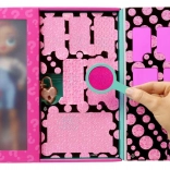 Décrypte les codes, ouvre les compartiments et découvre peu à peu la tenue, les chaussures, les bijoux et l’identité secrète de la poupée.