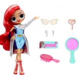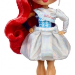 Poupée articulée avec de longs cheveux, des lunettes marquantes et des pièces argentées pour un jeu créatif et des séances photo.