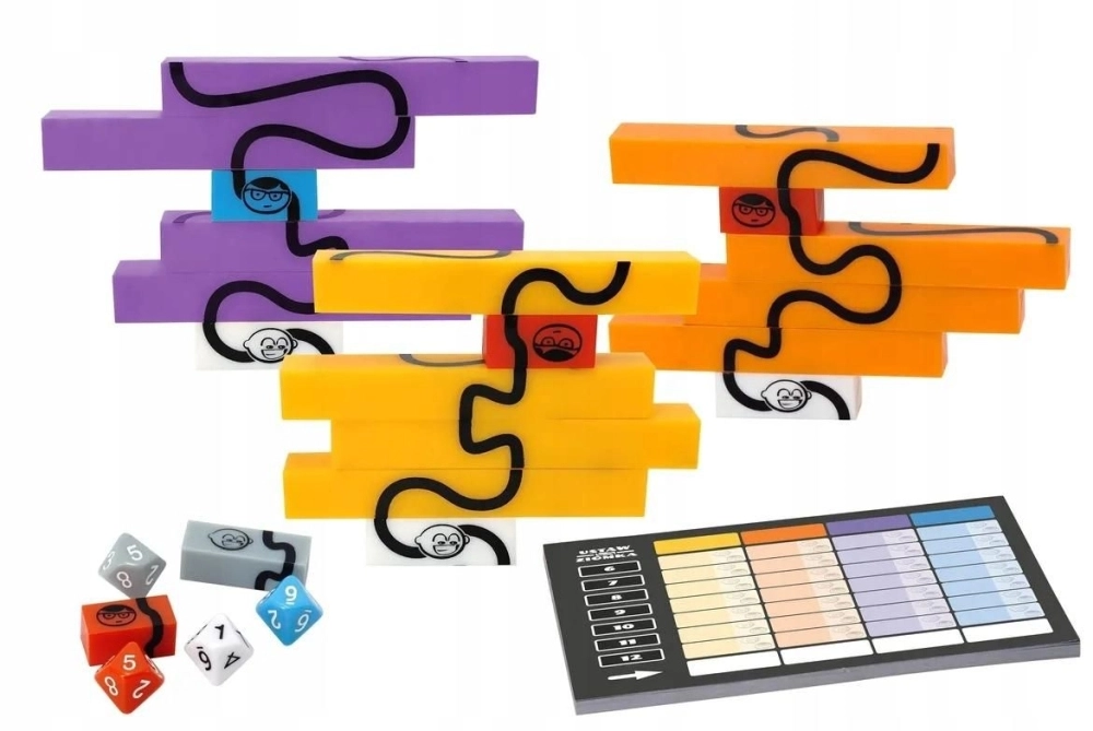 Ustaw Ziomka combine vitesse, précision et pensée stratégique. Les joueurs s’efforcent de construire le plus vite possible une tour stable avec de longues pièces et des figurines, de façon à créer à l’avant une ligne continue. Celui qui construit avec intelligence et rapidité remporte des bonus – après sept manches, gagne celui qui a le plus de points.