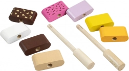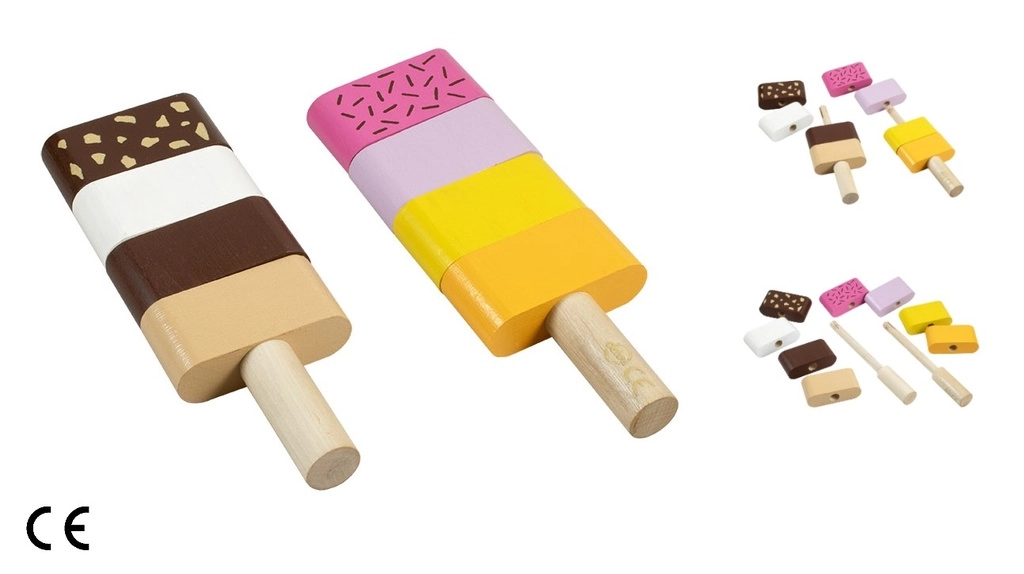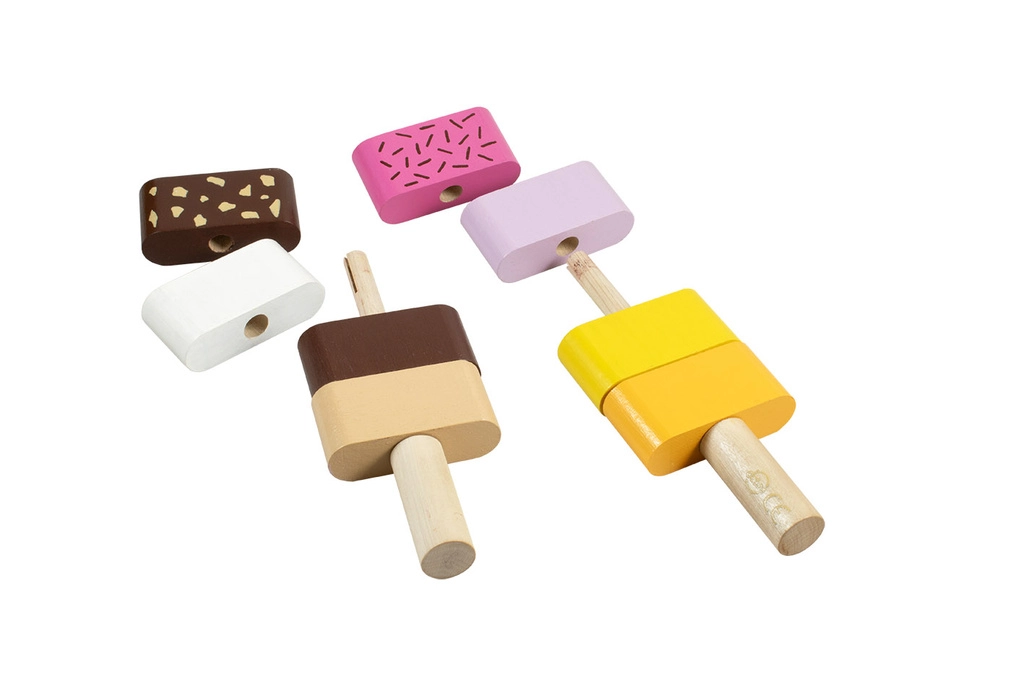 Offrez aux enfants un jeu créatif avec les glaces en bois à empiler DETOA. Chaque pièce a des bords lisses et agréables, et des segments colorés qui s’enfilent facilement sur les bâtonnets en bois. Les petits pâtissiers exercent leurs doigts, apprennent à différencier les couleurs et créent leurs propres combinaisons.