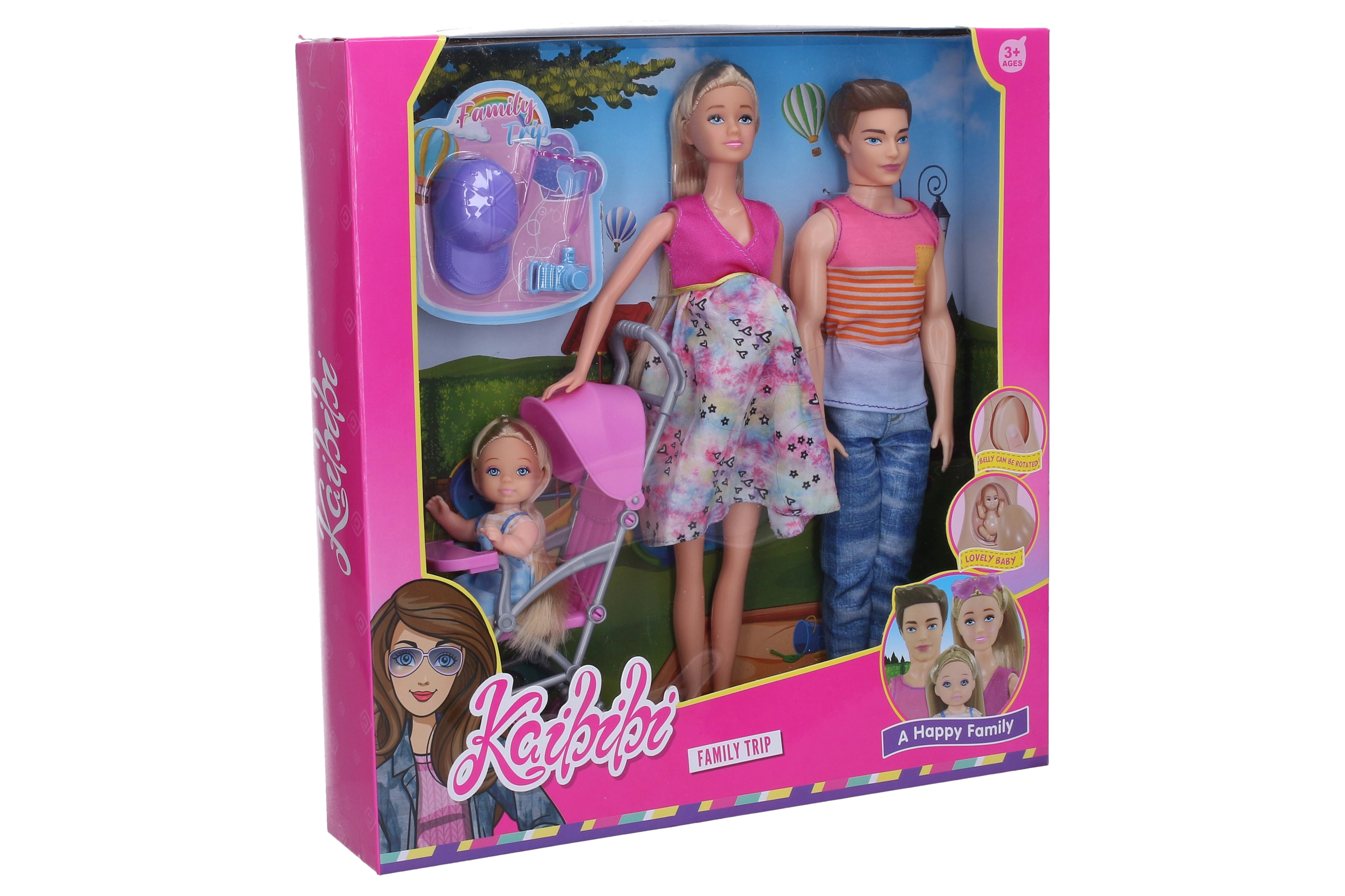 Ce set familial ravira les enfants qui aiment inventer des histoires. La poupée principale possède un ventre interchangeable – il suffit de le tourner pour le rendre plat ou enceinte, et le bébé peut être retiré en toute sécurité. Avec le mari, la petite fille, la poussette et les accessoires, il permet de jouer à l’attente du bébé, aux soins et aux moments familiaux partagés.
