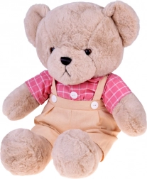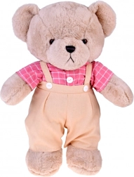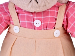 La chemise à carreaux rose et blanc se ferme avec un velcro (les petits boutons décoratifs ne sont pas fonctionnels) et le pantalon/short clair se retire tout aussi facilement – l’ensemble peut ainsi être lavé ou repassé. Les coutures précises et l’attention apportée aux détails garantissent une longue durée de vie et un jeu en toute sécurité.