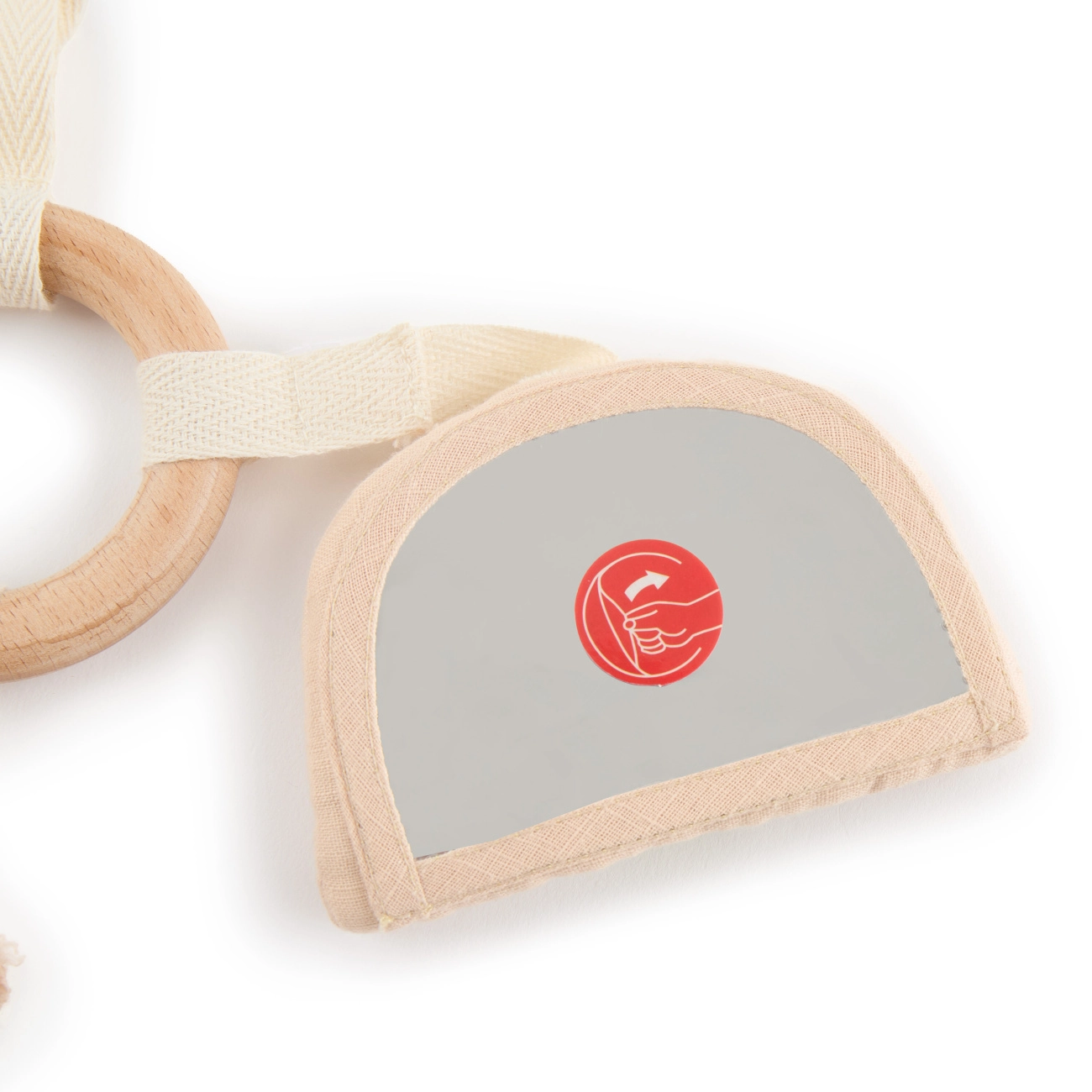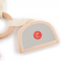 Adorable anneau en bois au motif de lapin Fine, idéal comme premier jouet moteur pour les bébés dès la naissance. Il favorise le développement de la motricité fine, stimule le toucher et l’ouïe et, grâce aux sangles pratiques, se fixe facilement au‑dessus du lit ou sur une arche de jeu. Trois jouets amovibles aux effets variés retiennent l’attention de l’enfant, et l’anneau en bois lisse sert aussi de support lors des poussées dentaires.
