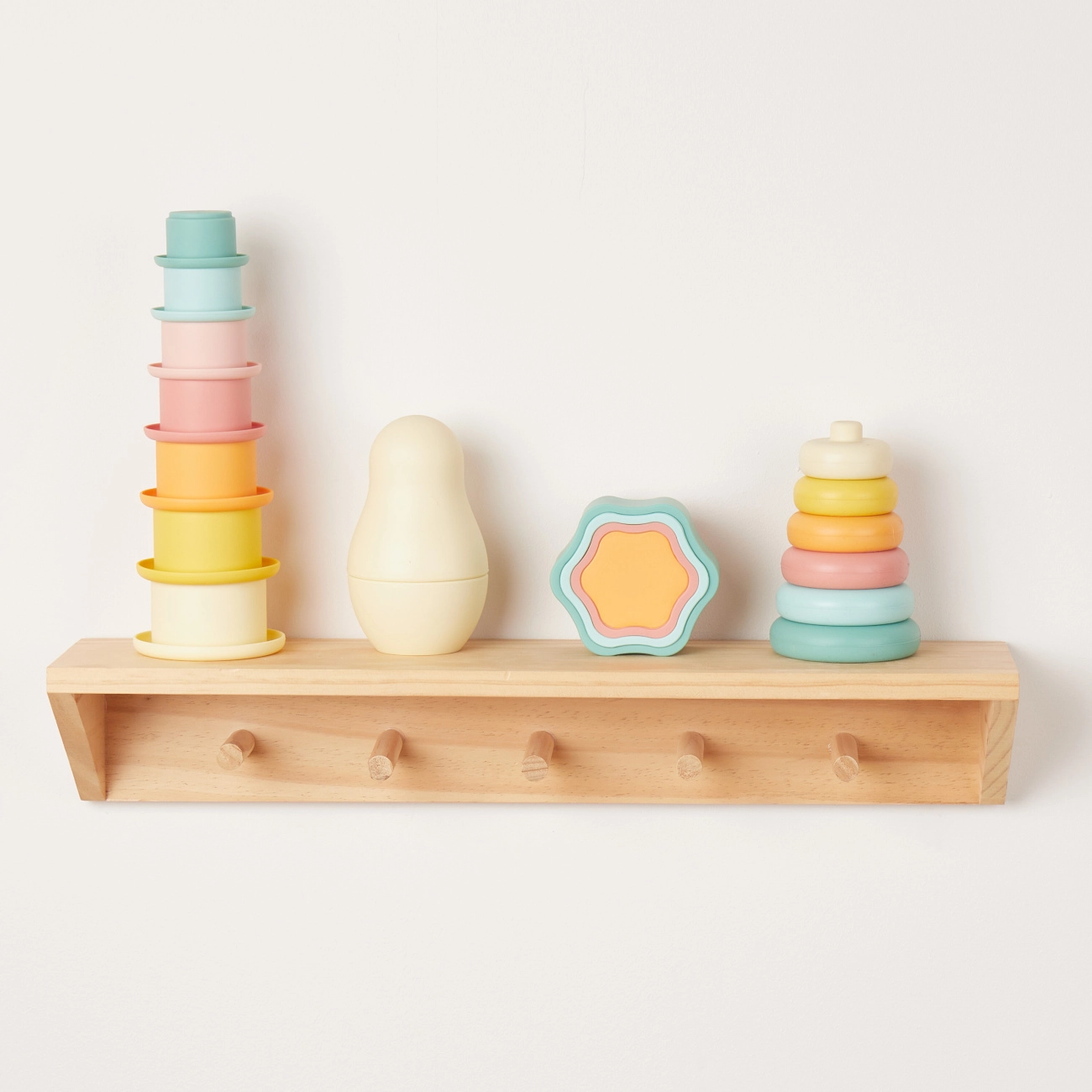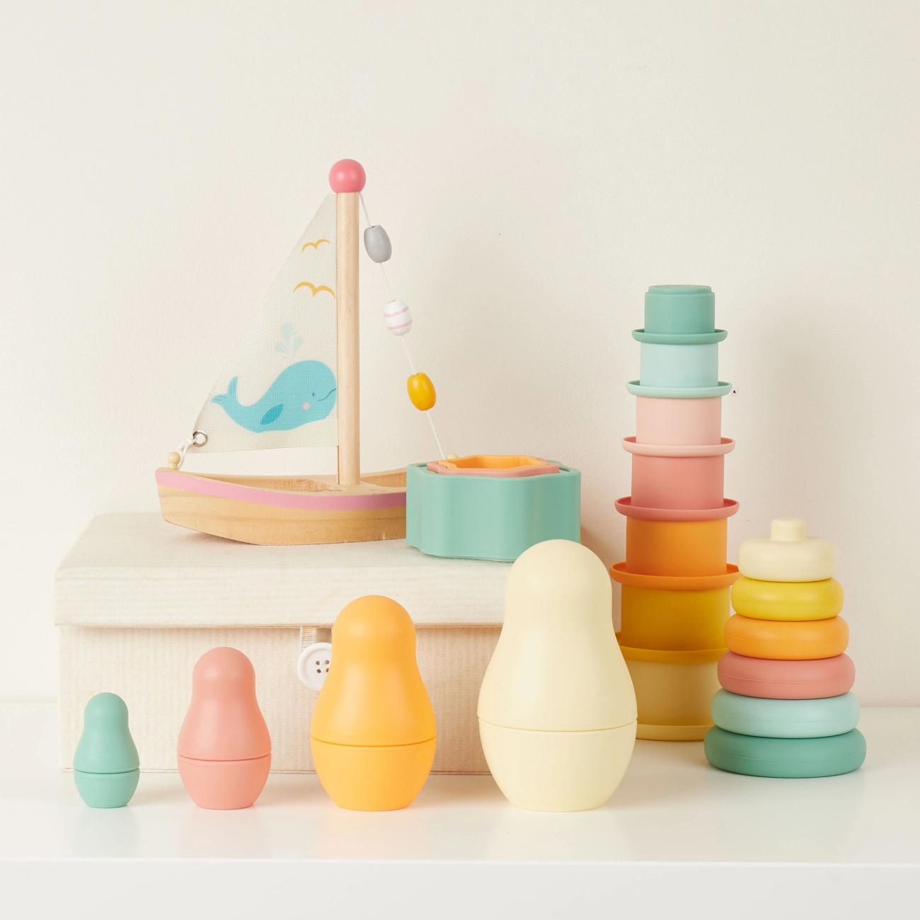 Ces poupées gigognes en silicone au style moderne sont idéales pour l’apprentissage ludique comme pour le jeu libre. Les enfants peuvent emboîter les poupées de la plus petite à la plus grande, trier par taille et entraîner leur coordination œil-main. Le design Tropical Vibes en fait un accessoire attrayant pour la chambre d’enfant et un jouet parfait à emporter.