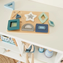 Les enfants apprennent naturellement à reconnaître et à associer les formes et les couleurs en insérant les 13 pièces dans les découpes correspondantes.